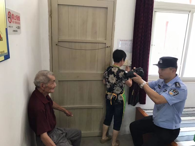 2019年8月14日下午,崇明分局新村派出所民警得知辖区内一行动不便老人身份证丢失急需补办,便立即前往敬老院为该老人上门拍摄身份证照片,得到了老人家属的好评。