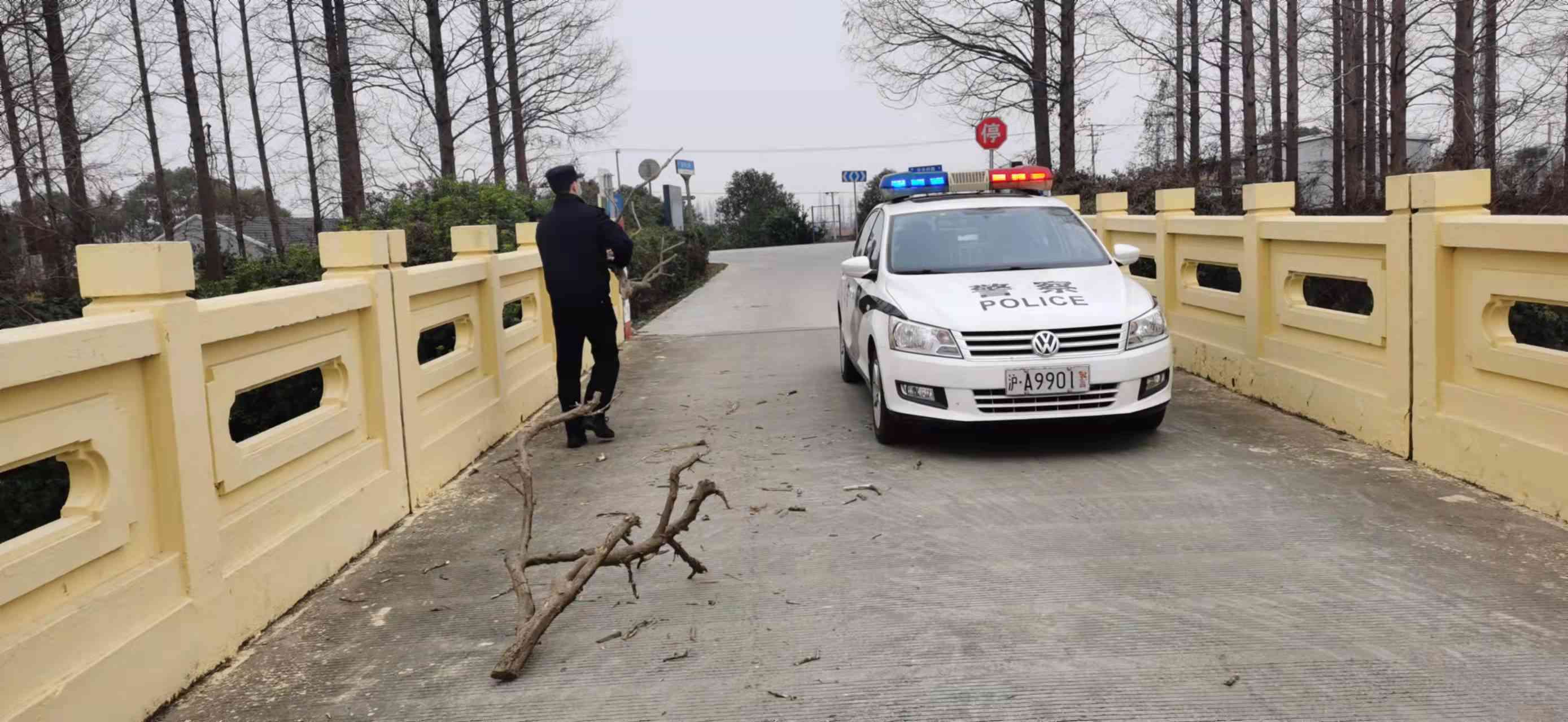 1月4日下午,绿华所民警在巡逻过程中,发现辖区内一座桥面上有散落的树枝,民警当即下车将树枝挪走,及时清除了路面交通隐患,确保了过往群众的通行安全。