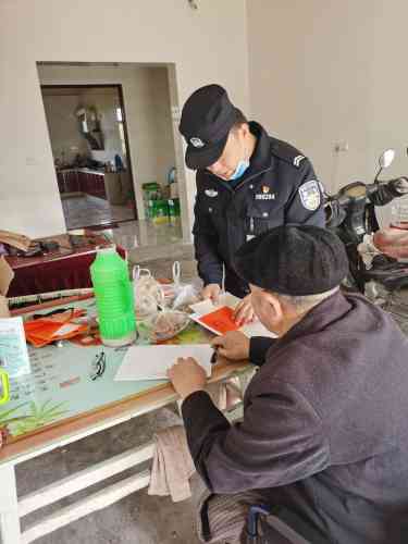 近日,崇明分局横沙派出所辖区一村民家属前往横沙派出所综合窗口求助,因其爷爷年事已高,且腿脚不便,无法到窗口办理户籍业务。社区民警了解情况后,上门为老人办理业务,老人及其家属对民警的热心服务表示由衷地感谢。