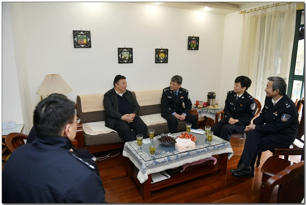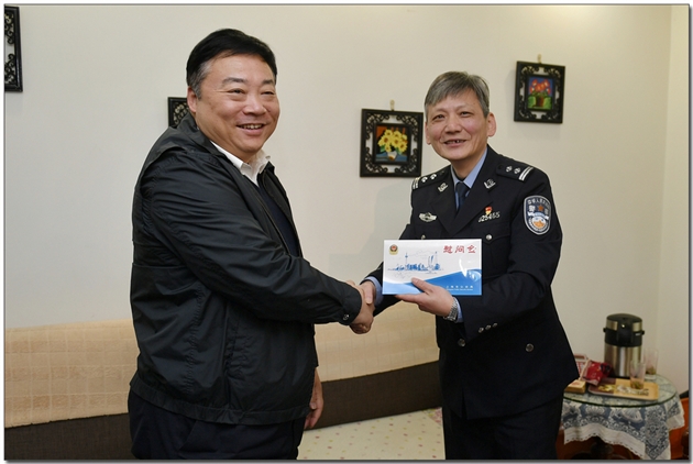 1月8日上午,市局副局长陈超到“全国特级优秀人民警察”周桥所民警王沪荣家中开展慰问。副局长印青峰,政治处主任冯兵及政治处、周桥所领导陪同参加。