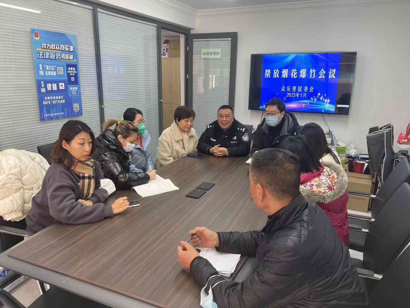 近日,江宁路派出所众乐里居委社区民警组织动员居委干部、物业单位管理人员、社区工作志愿者等,召开2023年春节期间烟花爆竹禁燃禁放工作部署会,进一步强调工作要求,统一思想,形成工作合力。