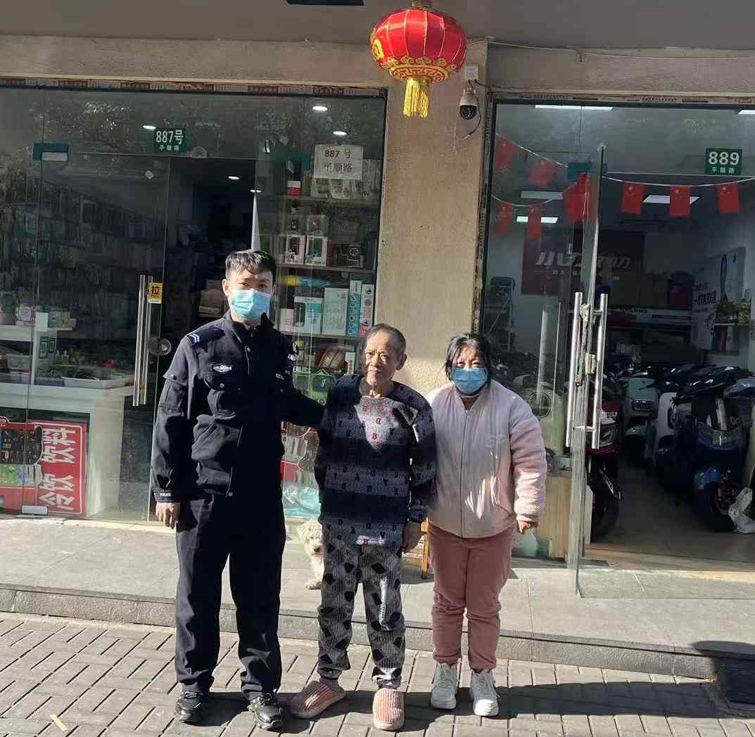 近日,彭浦新村派出所接到求助称辖区有位失智老人走失,老人走失时穿着单薄且未携带任何通讯工具和身份标识,青年民警马涛、黄捷接到求助后,放弃午休第一时间携带老人家属结合路面监控,前往老人经常活动的公园、超市、菜场等地寻找,在辖区内遍寻无果后,前往宝山继续寻找几经辗转,最终历时三小时将老人找到。家属对民警的帮助表达了感激。
