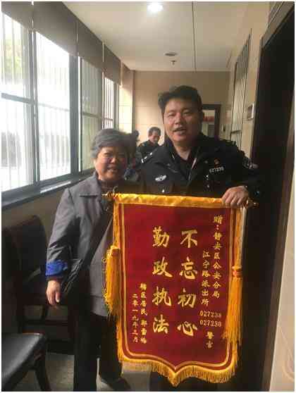 近日,江宁路派出所收到市民郭女士送来的锦旗,感谢民警张靖、刘毅化解了一起发生在其儿子和其同学之间的矛盾纠纷。 经了解,今年3月,郭女士的儿子和其朋友在一起饭局中因言语不快,发生肢体冲突,二人不同程度受伤,朋友间也撕破了脸皮。双方到所后,值班民警张靖、刘毅对双方当事人和家长进行了耐心开导、分析事理、权衡利弊,最终双方达成了调解协议。有感于民警耐心细致的工作态度,郭女士特意送来锦旗表示感谢。