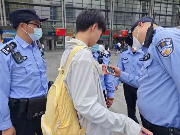 图为临汾路派出所民警郑兆磊、项欣晨在增援火车站期间,帮助来往旅客。