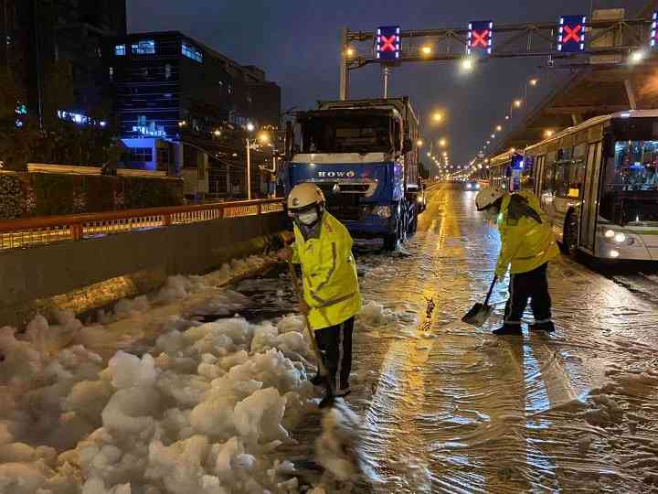 8月15日21时许,共和新路场中路口出现一起环卫车引擎盖冒烟警情,大宁路派出所民警了解情况后第一时间到达现场,配合相关职能部门将明火扑灭后,路面残留大量泡沫灭火剂,严重影响车辆通行,为保障交通行车安全,民警协同多位环卫工人清理现场地面泡沫,很快道路恢复了通畅,及时消除了道路交通安全隐患。此次民警的及时处置,切实净化了道路交通环境,全力预防道路交通事故的发生,为持续推进“动态隐患清零”专项工作打下了坚实的基础。