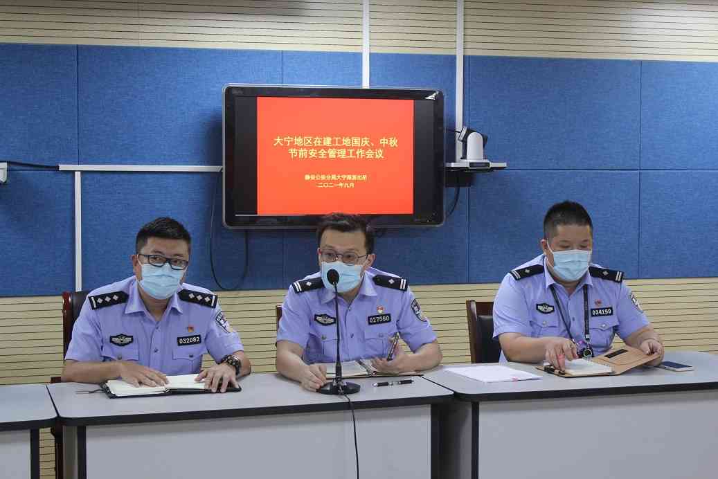 为切实做好中秋、“十一”节日期间各大工地现场安全稳定,将安全隐患消灭于萌芽状态,9月9日下午,大宁路派出所召开在建工地节前安全管理工作会议。期间,分管所领导根据工作实际向工地负责人提出了4点要求:一是要做实消防安全检查,以“救早、救小、灭初期”为己任,为辖区整体火灾形势稳定贡献力量;二是要做细实有人口管理,加大实有人口检查力度,切实提升基础掌控力;三是要做严治安防控工作,以“控发案、降警情”为抓手,加强“三区二道一场”(生活区、施工区、办公区、紧急疏散通道、应急救援通道、停车场)的管理工作,严守“不出事”的底线;四是要做深节前慰问工作,加强对工地工人的节前关爱,确保以更加包含的热情和精益求精的态度努力做好工程建设。