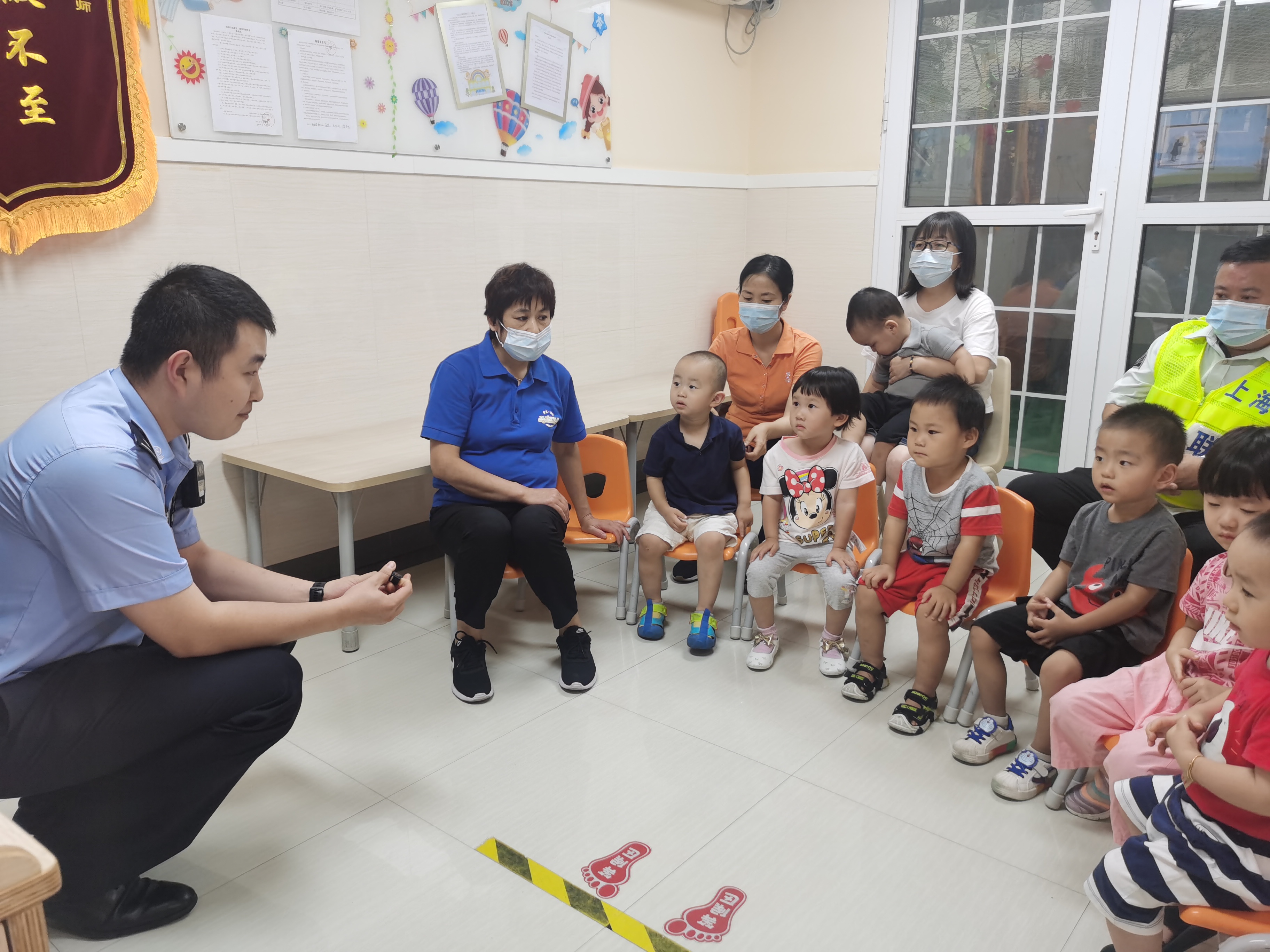 近日,江宁路派出所校外辅导员到辖区张家宅幼儿园开展校园安全防范宣传活动。期间,民警绘声绘色地向师生介绍了交通安全、防骗防拐等方面的知识,取得了良好的宣传效果。