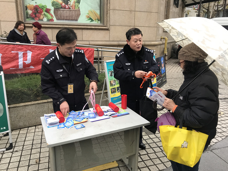 1月10日上午,江宁路派出所以“不忘初心,110共建共治享安宁”为主题在常德路元华超市门口设摊开展“110宣传日”活动。期间,民警通过设立展台、发放资料、现场讲解、以案说法、发放礼品等形式,向群众讲解了110报警服务台的受理范围、如何正确拨打110、拨打110的注意事项,此外对短信以及微信报警服务进行详细介绍,引导市民群众正确使用110报警平台,杜绝奇葩报警和扰警行为。同时,民警紧密结合防范电信诈骗、文明养犬、烟花爆竹管控、冬季火灾防范等工作,不断扩大110宣传工作的实际效果,有效增强了市民自觉守法意识,营造了多方参与、警民互动的良好氛围。期间,民警共发放宣传资料300余份,参与宣传居民200余人。通过面对面与群众互动,拉近警民距离,营造安全稳定的良好社会氛围。