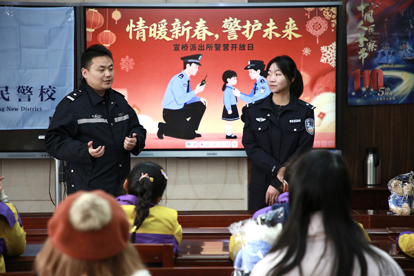1月27日上午,值此新春来临之际,分局宣桥派出所与辖区三灶实验小学联合举办了“情暖新春警护未来”警营开放日活动。活动通过警营参观、警械展示、安全宣讲、新春送福等环节,带领孩子们开启一场集探索、体验、学习、迎新为一体的沉浸式互动课堂。