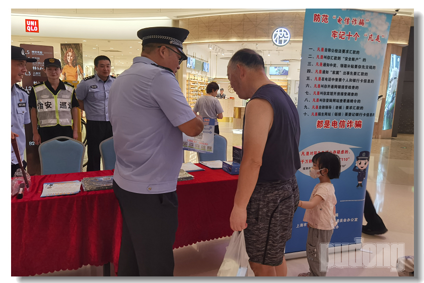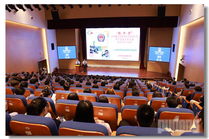 近日,浦东警方开展“百、千、万”非接触式侵财类案件防范宣讲暨“全民反诈在行动”集中宣传月活动,进企业、进高校、进单位,全面营造社会反诈防骗浓厚氛围。
