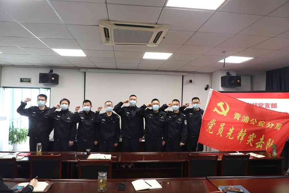 2022年10月14日上午,香花桥派出所组织开展党的二十大和第五届进博会安保战时党员突击队、党员先锋岗成立授旗仪式。所党支部副书记向2支党员突击队和1各党员先锋岗授旗,并喊出“全力以赴,决战二十大,护航进博会”的动员令。