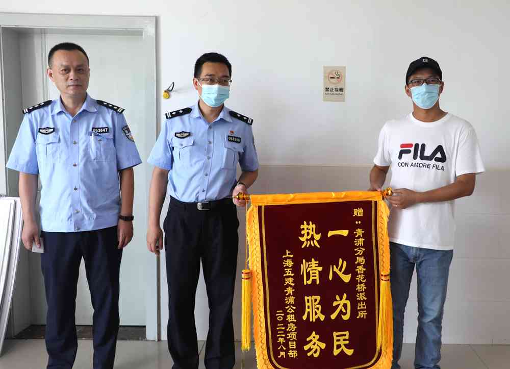 2022年8月8日下午,香花桥派出所与上海建工五建集团有限公司青浦区公共服务租赁性配套用房项目(北青公路地块)项目部开展警民共建活动。上海建工五建公司青浦项目部送来一面“一心为民,热情服务”的锦旗,感谢派出所民警至其工地开展反诈、防火、治安等宣传指导,并送上高温防暑饮料等慰问品。同时,与派出所签订《警民共建协议书》。