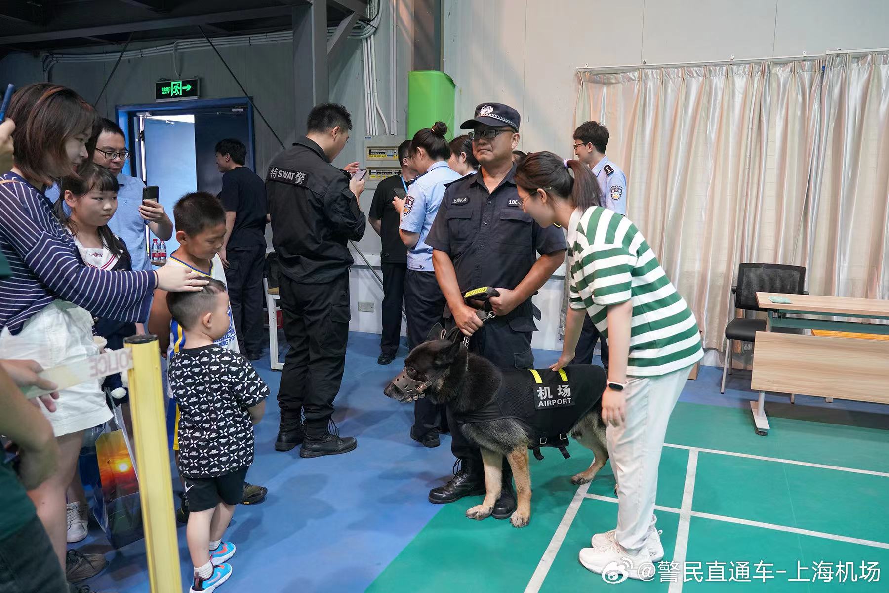 【大朋友小朋友都来了】今天,机场公安开展“警民携手,共建平安机场”政府开放月活动,邀请大朋友小朋友一起来警营参观和参与互动。观众看了反诈宣传、警犬表演、特警训练展示等等节目,大呼过瘾。在欢声笑语中,大家学习了反诈的知识,也了解了机场民警的工作。