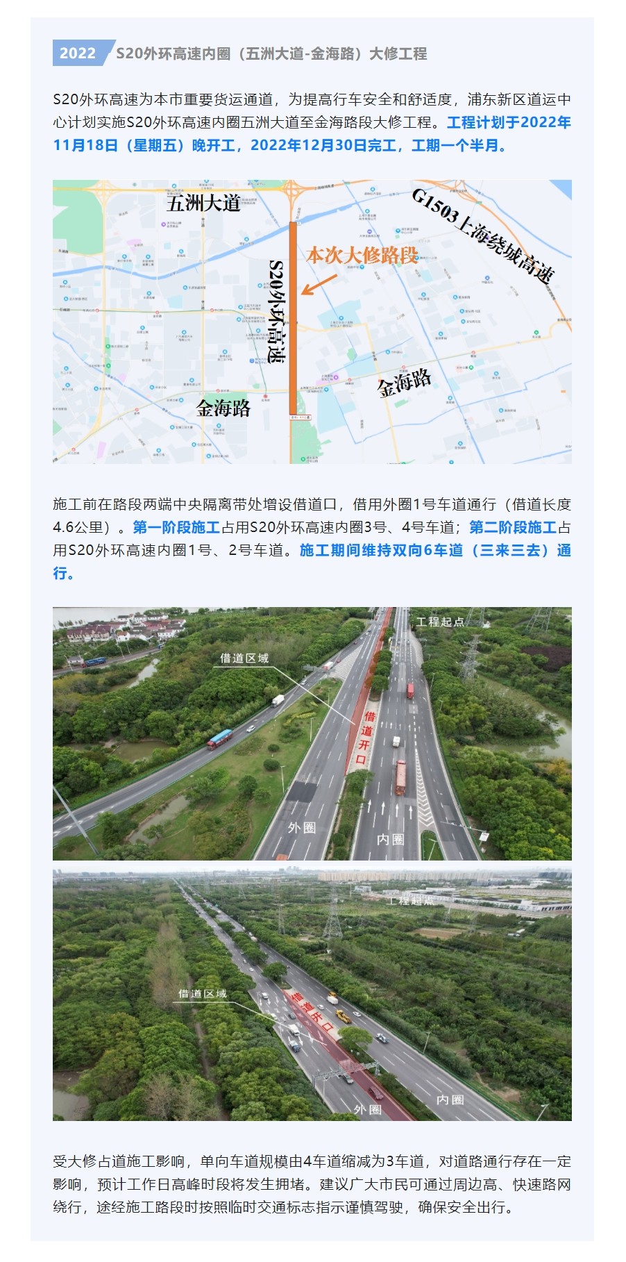 【警方提示】11月18日晚S20外环高速内圈(五洲大道-金海路)大修工程将开工!