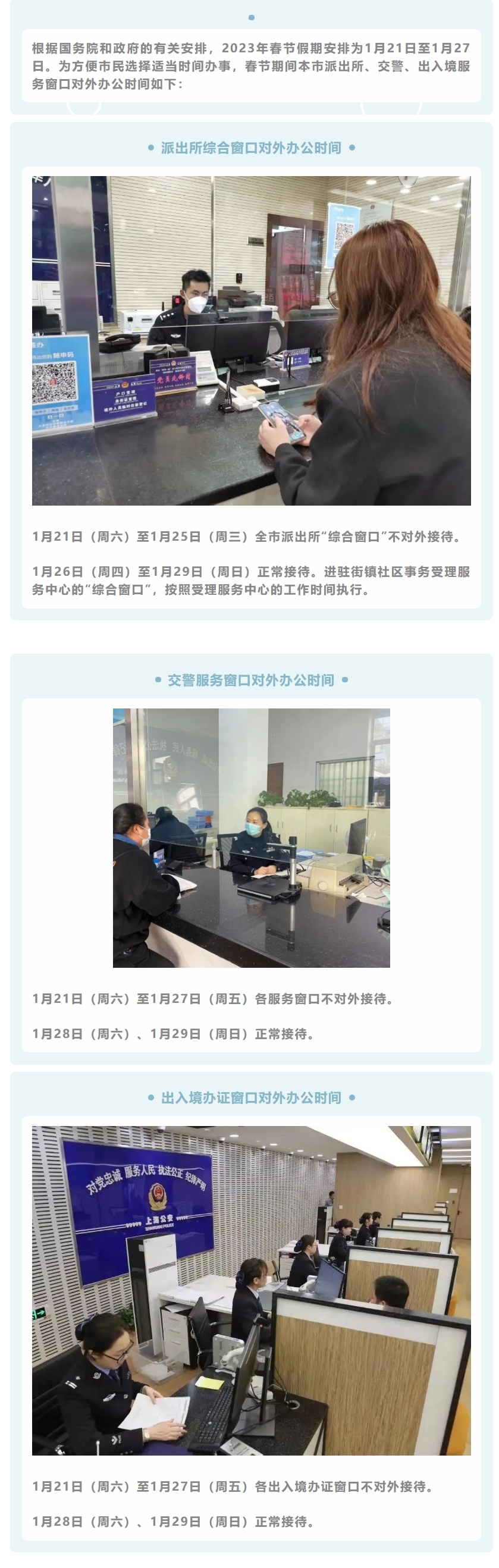 2023年春节期间本市派出所、交警、出入境服务窗口对外办公时间