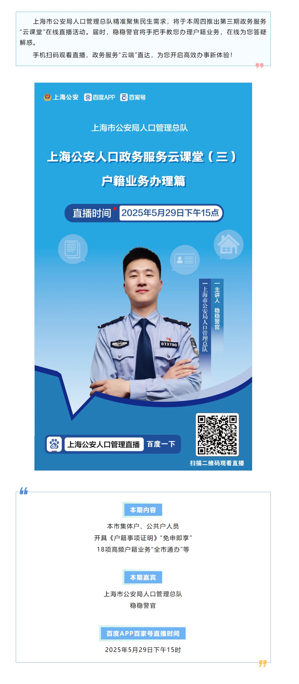 上海公安人口政务服务云课堂第三期开讲啦!稳稳警官手把手教您办理户籍业务