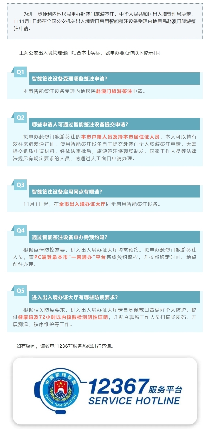 11月1日起启用智能签注设备受理赴澳门旅游签注申请,这些申办要点请注意