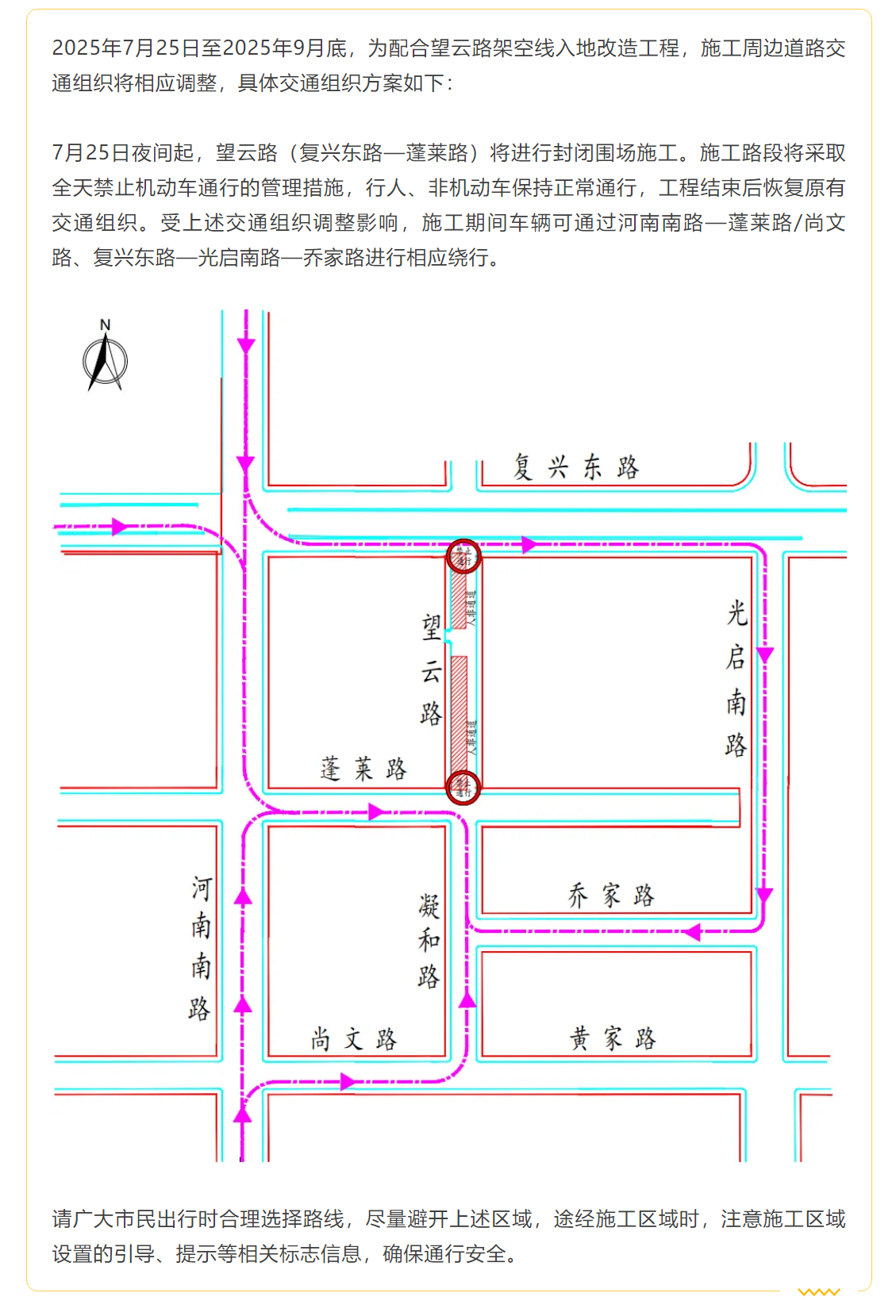 黄浦区望云路(复兴东路—蓬莱路)7月25日起实施全封闭施工