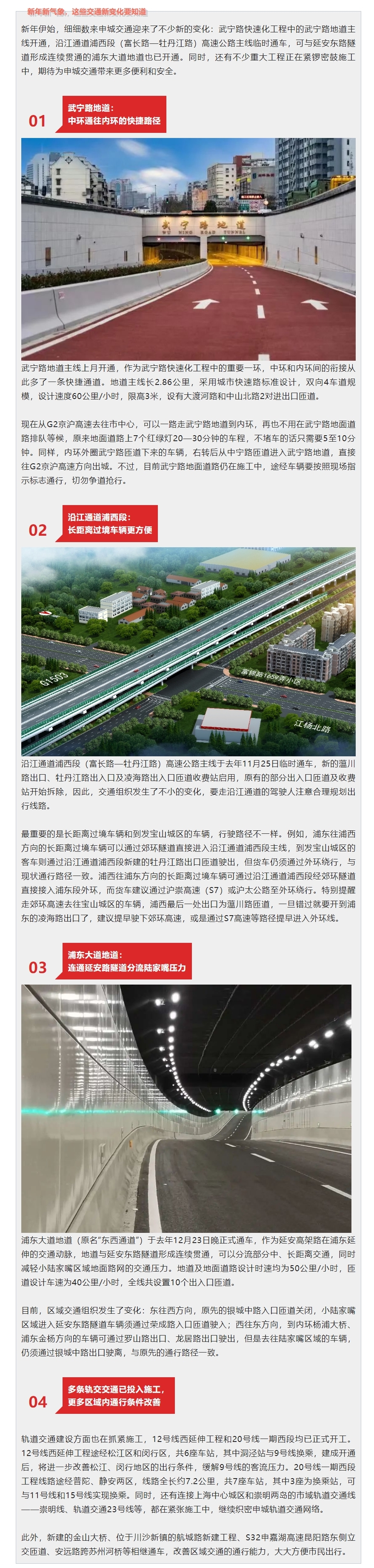 【便民】武宁路地道浦东大道地道相继开通, 沿江通道浦西段高速主线临时通车!