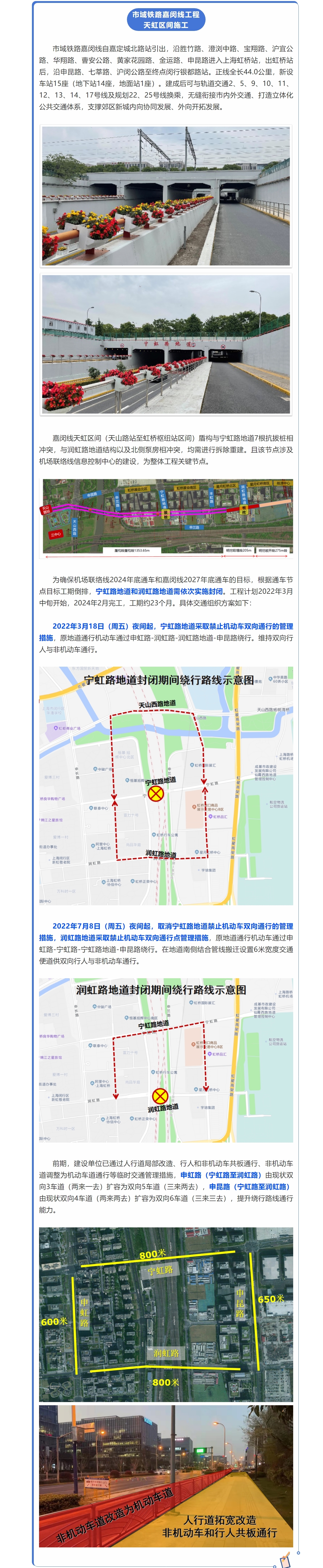 市域铁路嘉闵线天虹区间开始施工,本周五夜间封闭宁虹路地道,配套交通组织如下