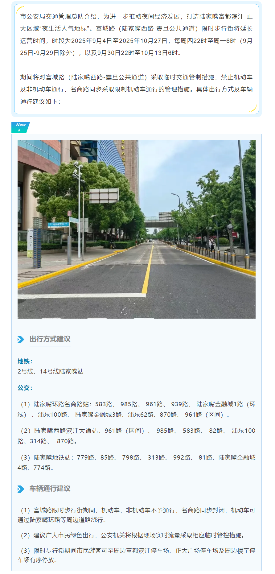 【交通】浦东新区富城路将延长限时步行街运营时间