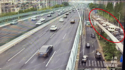 图8 中环内圈桃浦路下匝道优化前通行情况(四倍速播放)