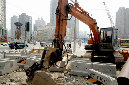 图:长时间、大面积的占道施工,也是导致长寿路“二乱”行为突出的重要原因。