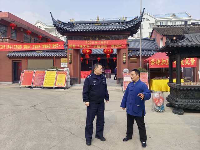 康桥派出所所领导检查一王庙春节香讯安保准备工作
