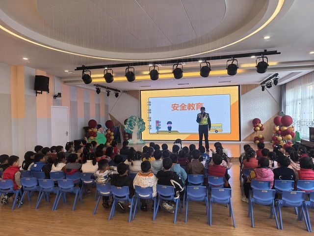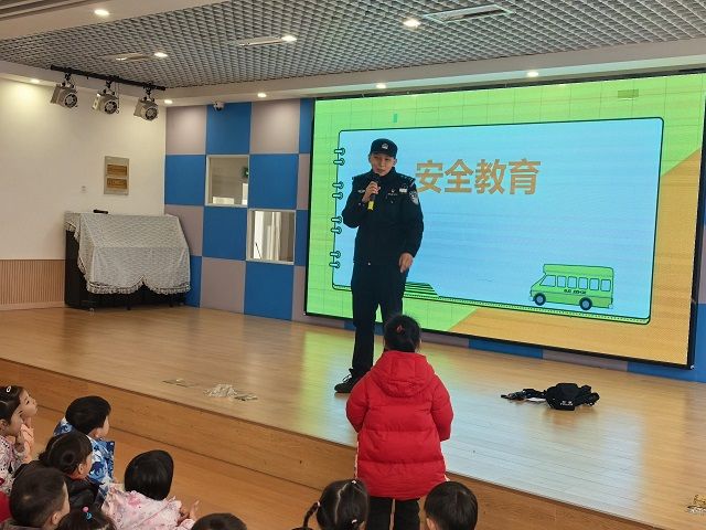 曹路派出所会同交警三大队至辖区幼儿园开展“一盔一带”安全宣传活动