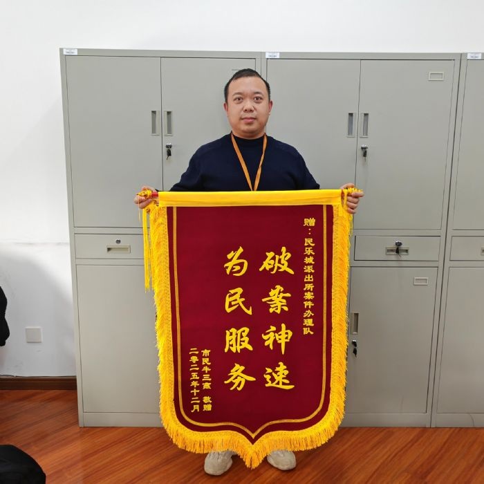 12月10日下午,民乐城派出所收到辖区居民牛女士送来的锦旗,上书“破案神速为民服务”,感谢民警王振快速破案,为其挽回被骗的50000元损失。... [详细]