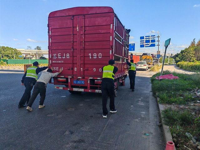 货车“趴窝”收费站,民警紧急处置护秩序——书院派出所民警及时处置高速口抛锚车辆