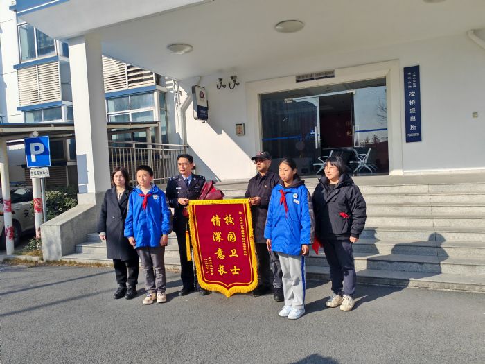 【凌砺2026·护校安园】 凌桥中学师生代表到所赠旗献花 致谢“校园卫士”