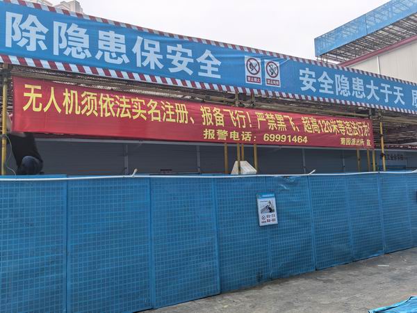 菊园派出所在辖区工地张贴无人机宣传横幅