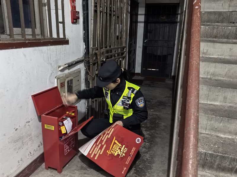 友谊所民警在小区楼道开展消防安全检查