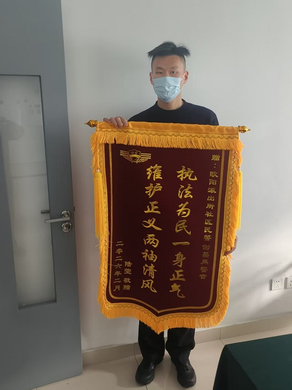 欧阳所收到一面锦旗